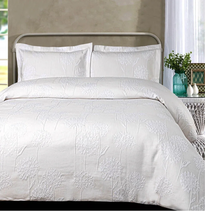 Embellish your bed with a little help of the Alderley Cotton Duvet Cover Set. The charming floral pattern will bring a modern and fresh atmosphere to your sleeping space. It is made in Portugal with a luxurious jacquard cotton fabric backed with a 300TC percale white cotton fabric and it feels even better than it looks!
