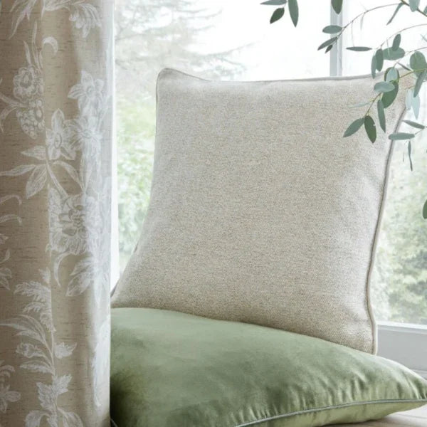The Laura Ashley Milbourne herringbone cushion is a timeless staple, beautifully woven in muted neutral tones to complement a variety of interior styles, from contemporary to traditional, making it an ideal choice to add a cosy yet classic touch, Complete with a luxurious velvet piped edge and plush pad. Filled with a luxury fine denier micro fibre “Feels like Feather” pad.