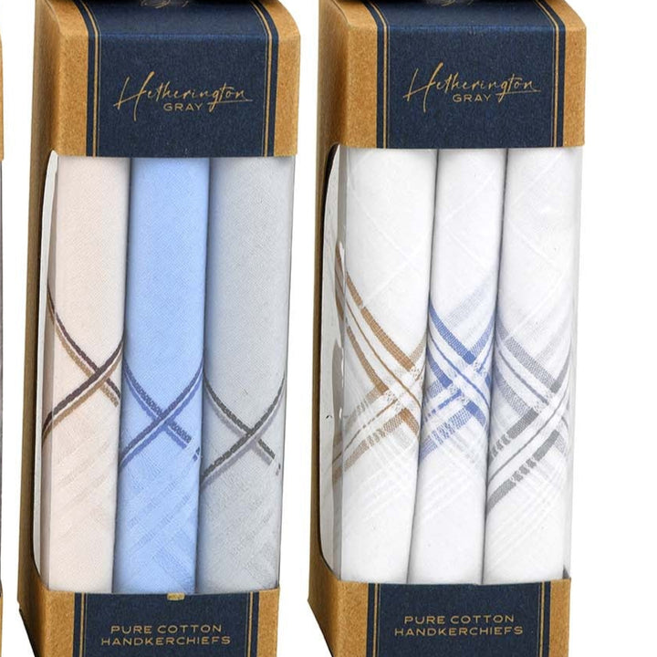 This charming box set includes three mens cotton handkerchiefs in assorted satin border, combining practicality with timeless style. Made from soft, breathable cotton, they offer gentle care while lasting through daily use. Perfectly packaged, this set makes a thoughtful gift or a stylish addition to your personal essentials. Carry a touch of classic elegance wherever you go with these versatile, reusable handkerchiefs.