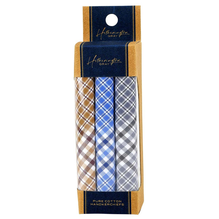 This charming box set includes three mens cotton handkerchiefs in assorted check, combining practicality with timeless style. Made from soft, breathable cotton, they offer gentle care while lasting through daily use. Perfectly packaged, this set makes a thoughtful gift or a stylish addition to your personal essentials. Carry a touch of classic elegance wherever you go with these versatile, reusable handkerchiefs.